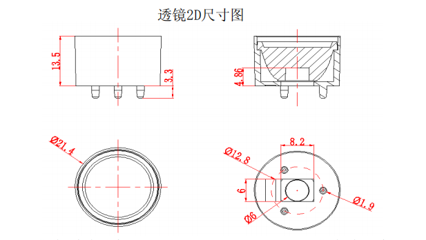 2. 特别针对小功率红外5050 LED而设计,对LED所发出的光利用率可以达到90%以上(3MM透光率为93%);3. 配合红外监控镜头4MM、6MM、8MM几种规格而专业设计,做到红外光斑与监控屏幕可视范围有效统一,无暗角,