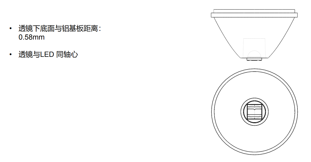 产品尺寸图 装配关系 仿真结果 1/ 照度光斑图 2/ 配光曲线图 3/ 结果分析 照度图(分析1x1m,@1m) 配光曲线 中心照度值